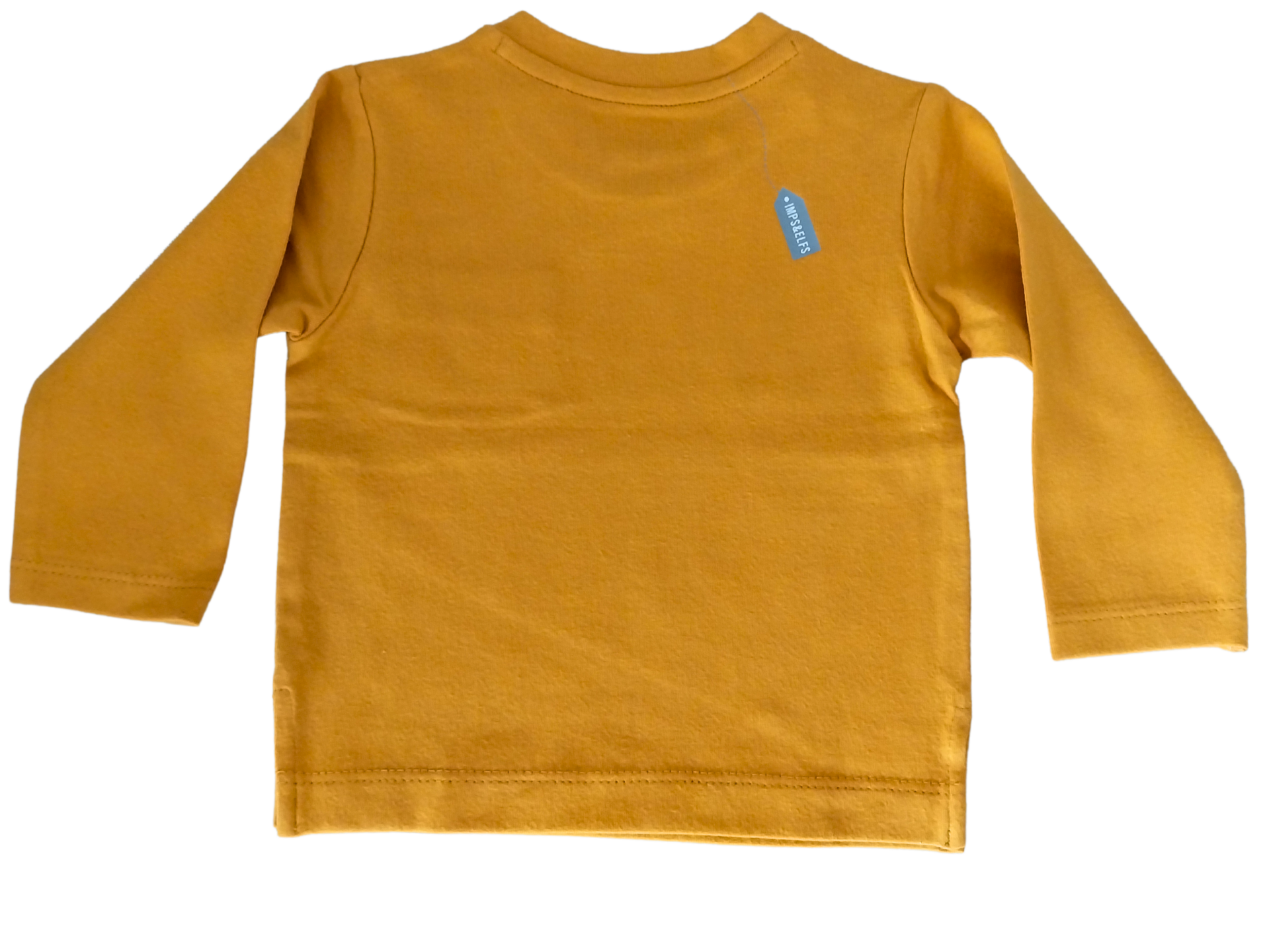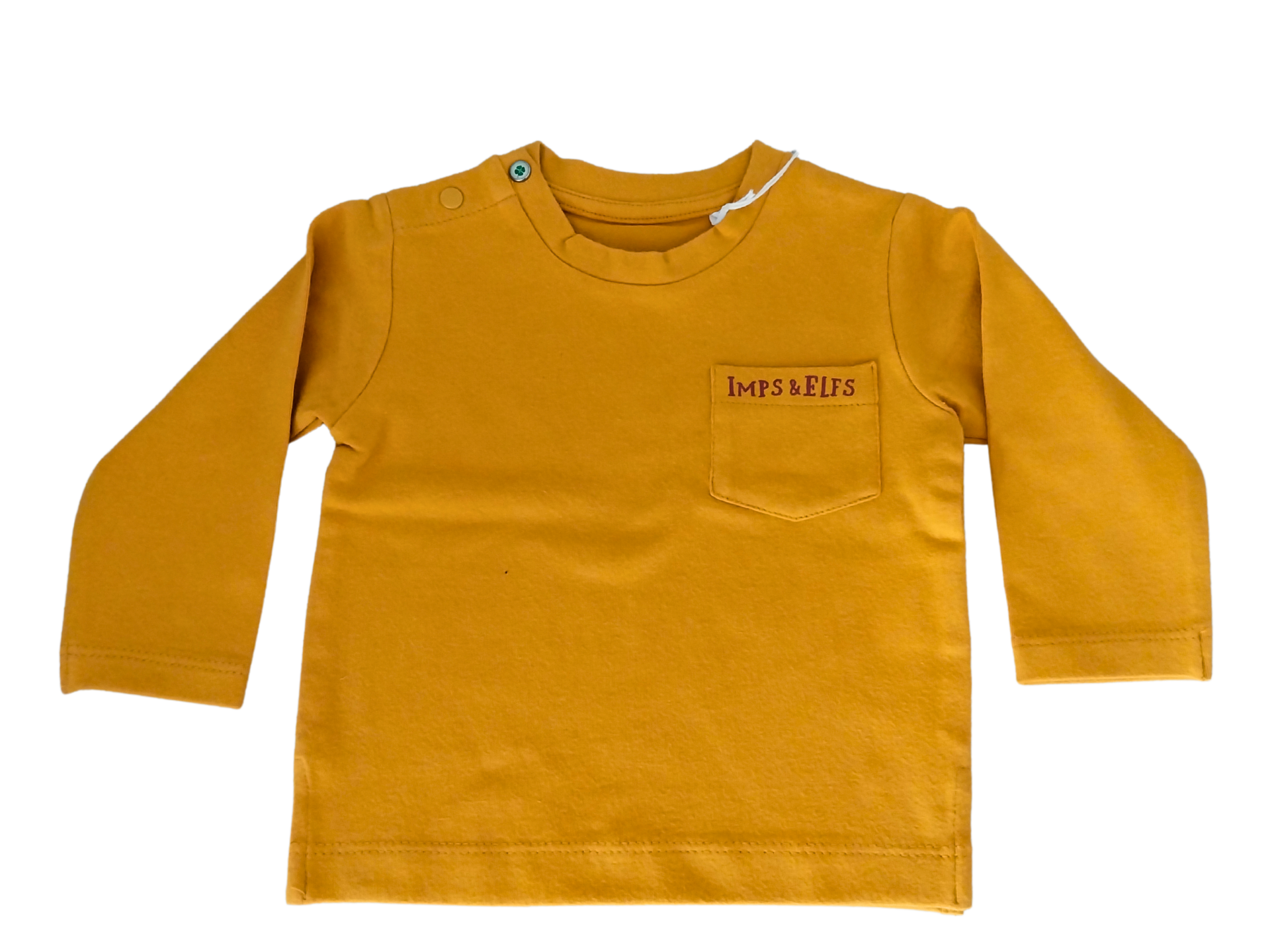 Leuke longsleeve in prachtige okergele tint, met 2 handige drukknoopjes op de schouder en een borstzakje voor een leuk stoer effect, in een fijne stretchy stof.