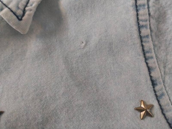Boven het borstzakje zit een klein gaatje, zie laatste foto.