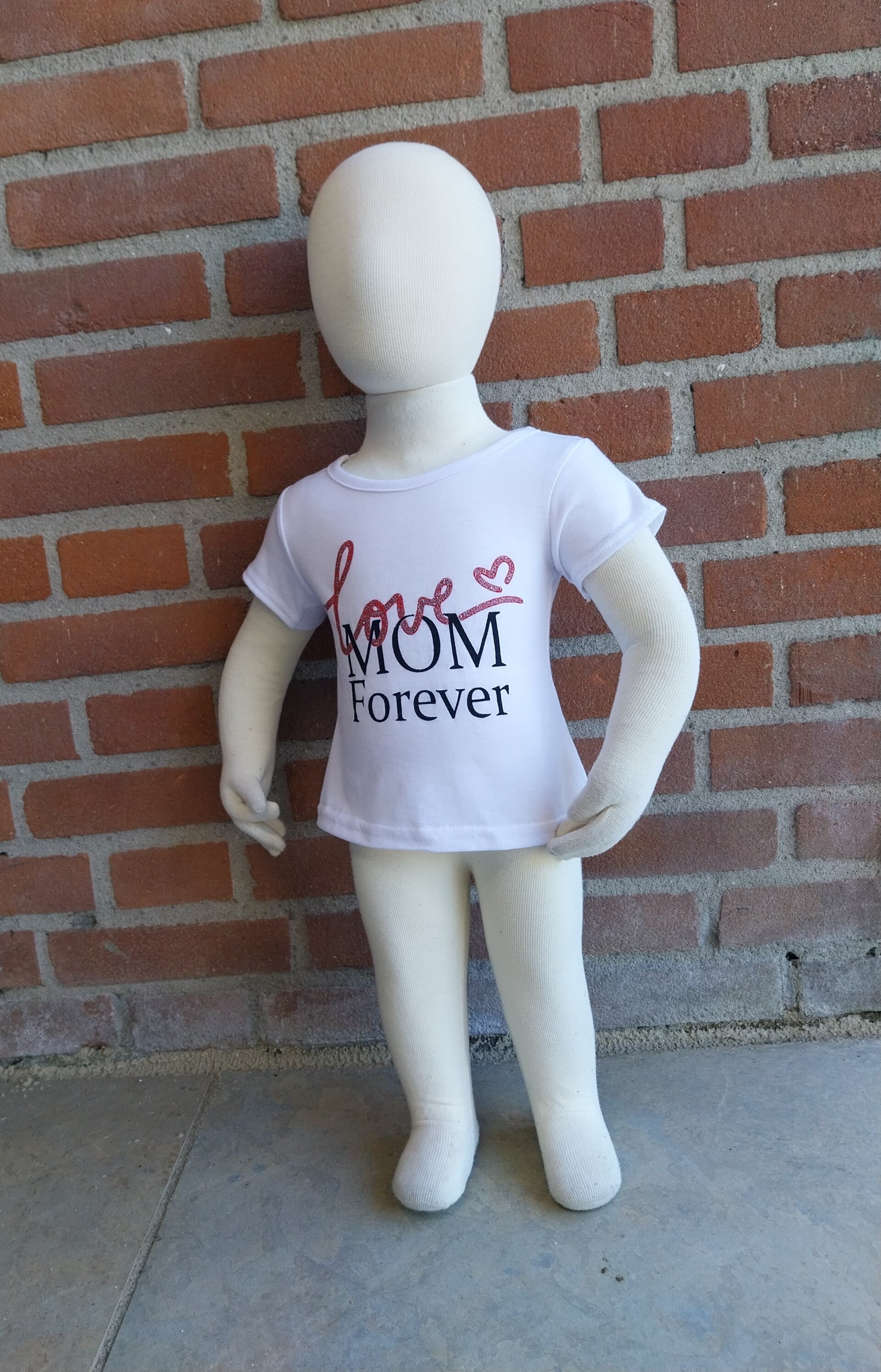 Ben je op zoek naar het perfecte cadeau voor een babyshower, kraambezoek of gewoon om te laten zien hoeveel mama betekent? Dit witte T-shirt met de tekst "Love MOM Forever" is een absolute hartendief!